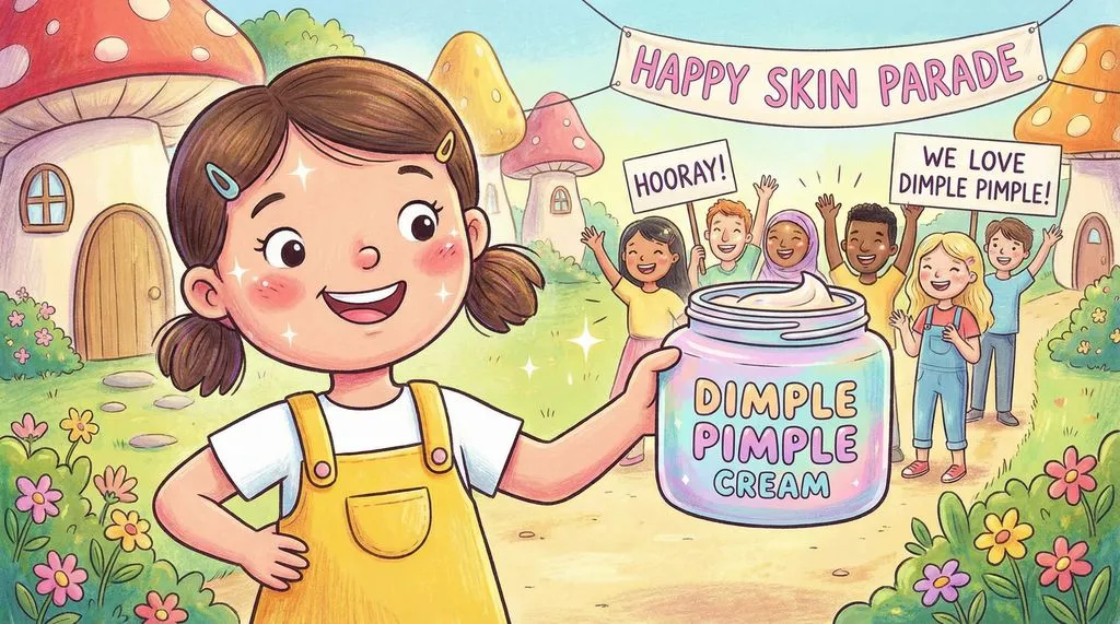 Dimple was walking to school. Then all of a sudden, out of nowhere, a big, ugly pimple sprouted on her nose. She didn't notice it.