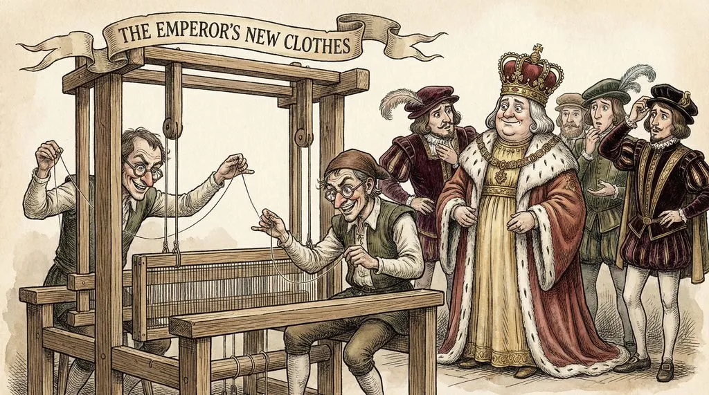 Then there were two people, very, very clever. And they were crooks. They came from Germany. And they said, "We are going to make a lot of money from this king." So they told the king that we have a very special fabric. And it's very, very special. It is the thinnest fabric in the world. It's the most comfortable. It is so soft that when you wear it, you will not feel as if you're wearing any clothes. It is so soft. And you cannot even see it, see through it. Only people who are, but only problem is if you're silly. If you're a silly person and if you are not an intelligent person. So if you're a silly person, you will not be able to see the clothes.