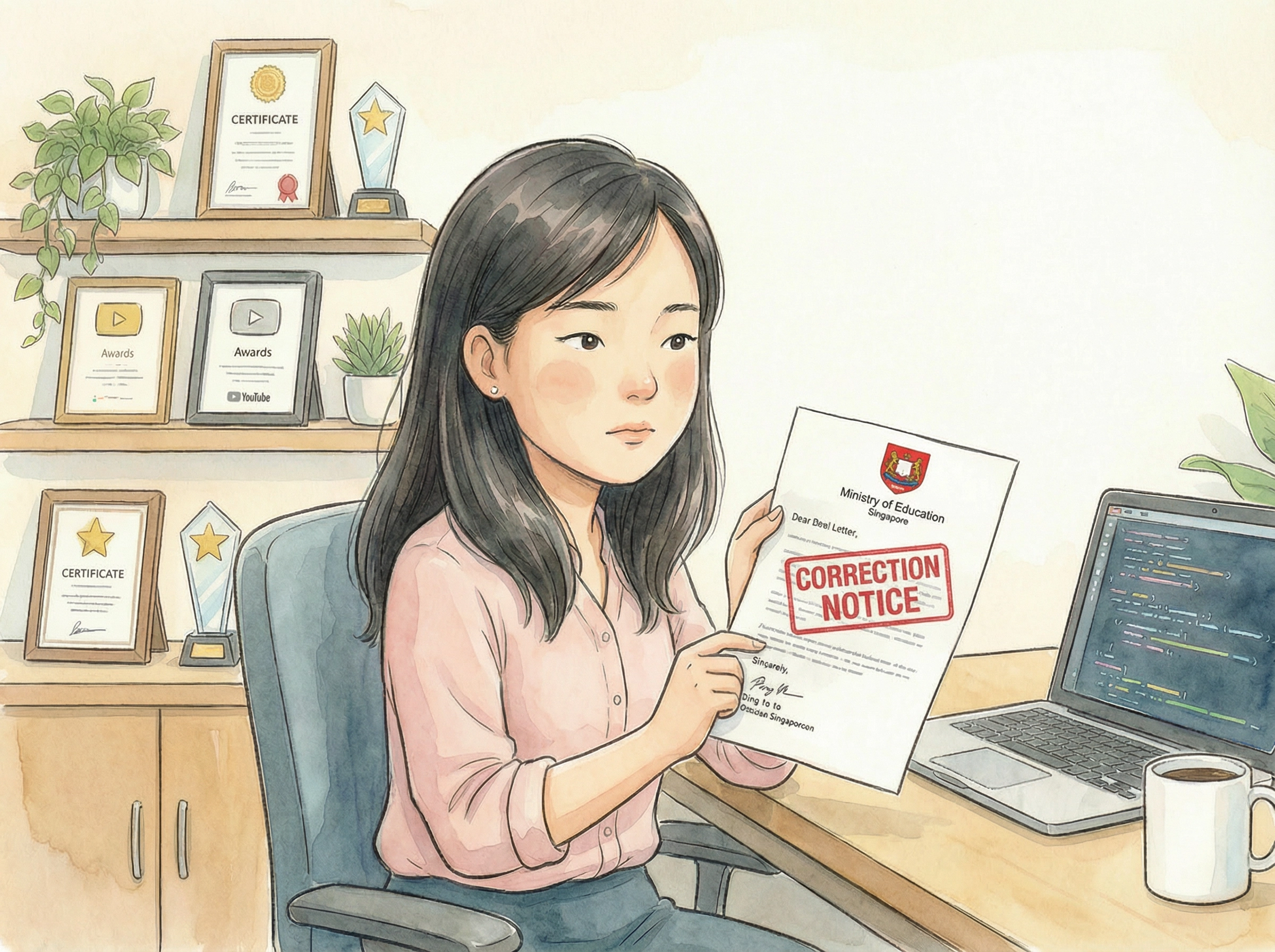 The letter said: "Every year, we conduct an audit of old examination records to ensure everything was processed correctly. We wish to inform you that when you sat for your PSLE in 1994, there was an administrative error. Your examination papers were mixed up with another student whose roll number was 121. Your roll number was 120. As a result, you were given the score of 360, which actually belonged to the other student. Your actual PSLE score was 180. We sincerely apologise for this error."