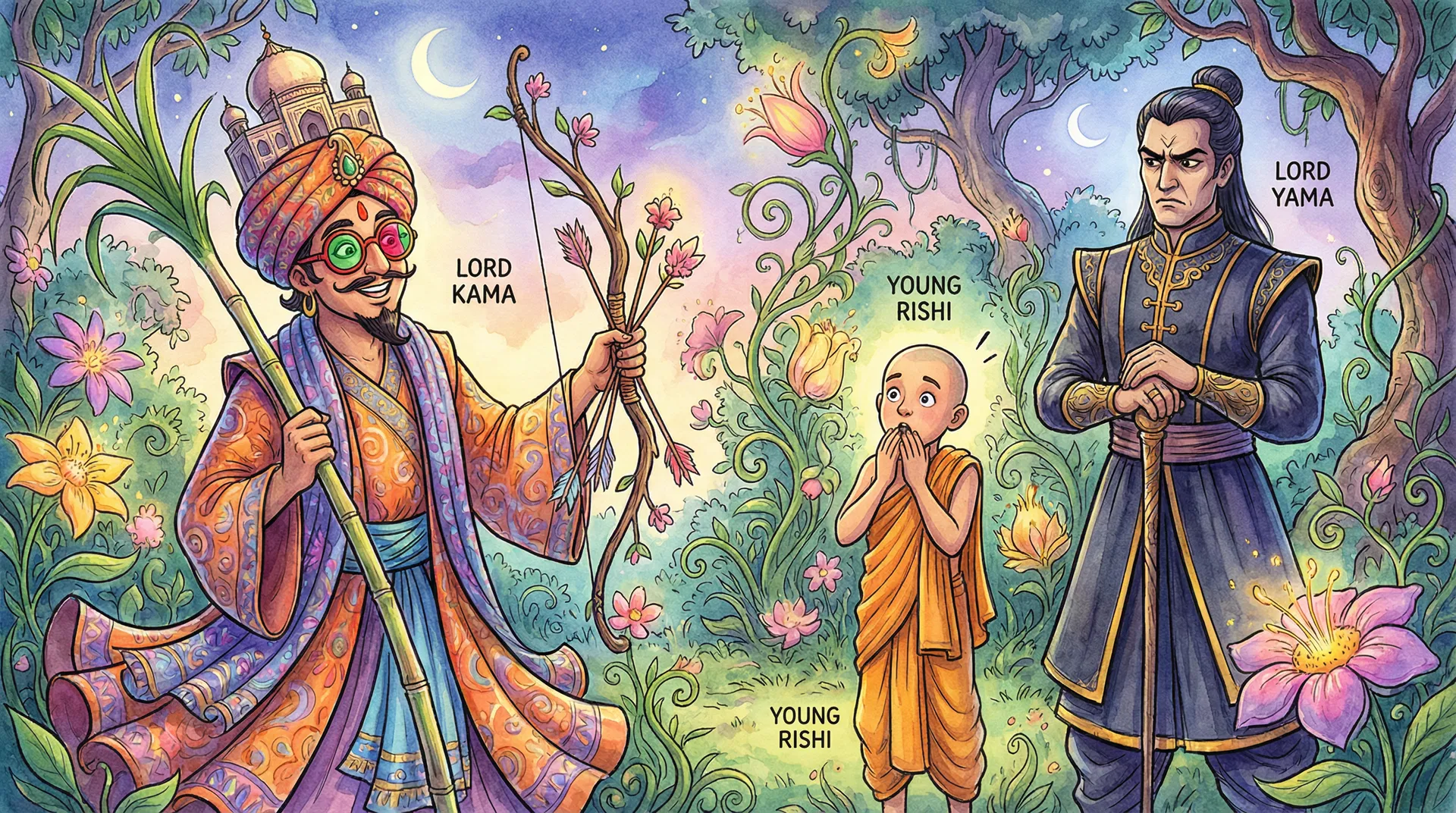 Then suddenly, another God—another Lord—came behind Rishi and said, "Rishi, don't listen to this person. He's invisible. He is all trouble. He is just all fun, no work."